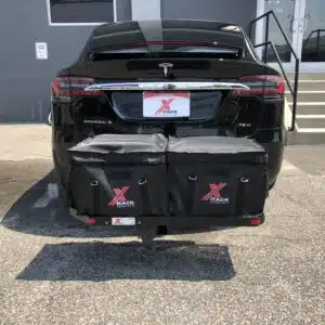 Durable waterproof zipper top bag designed to fit in the trunk well of the Model X (2 side by side).